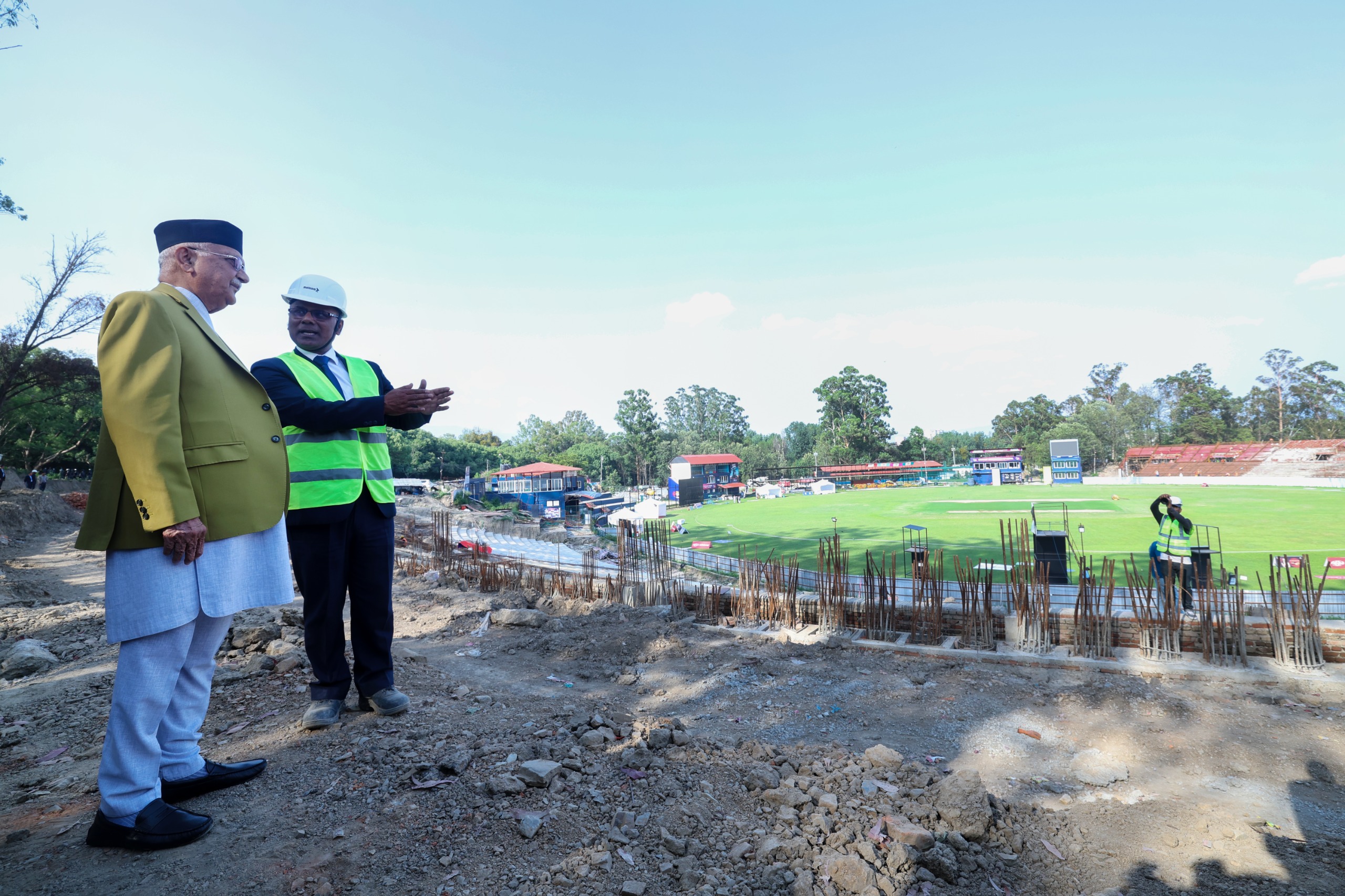 त्रिवि क्रिकेट मैदानको निरीक्षणमा पुगे प्रधानमन्त्री ओली (तस्बिरहरू)
