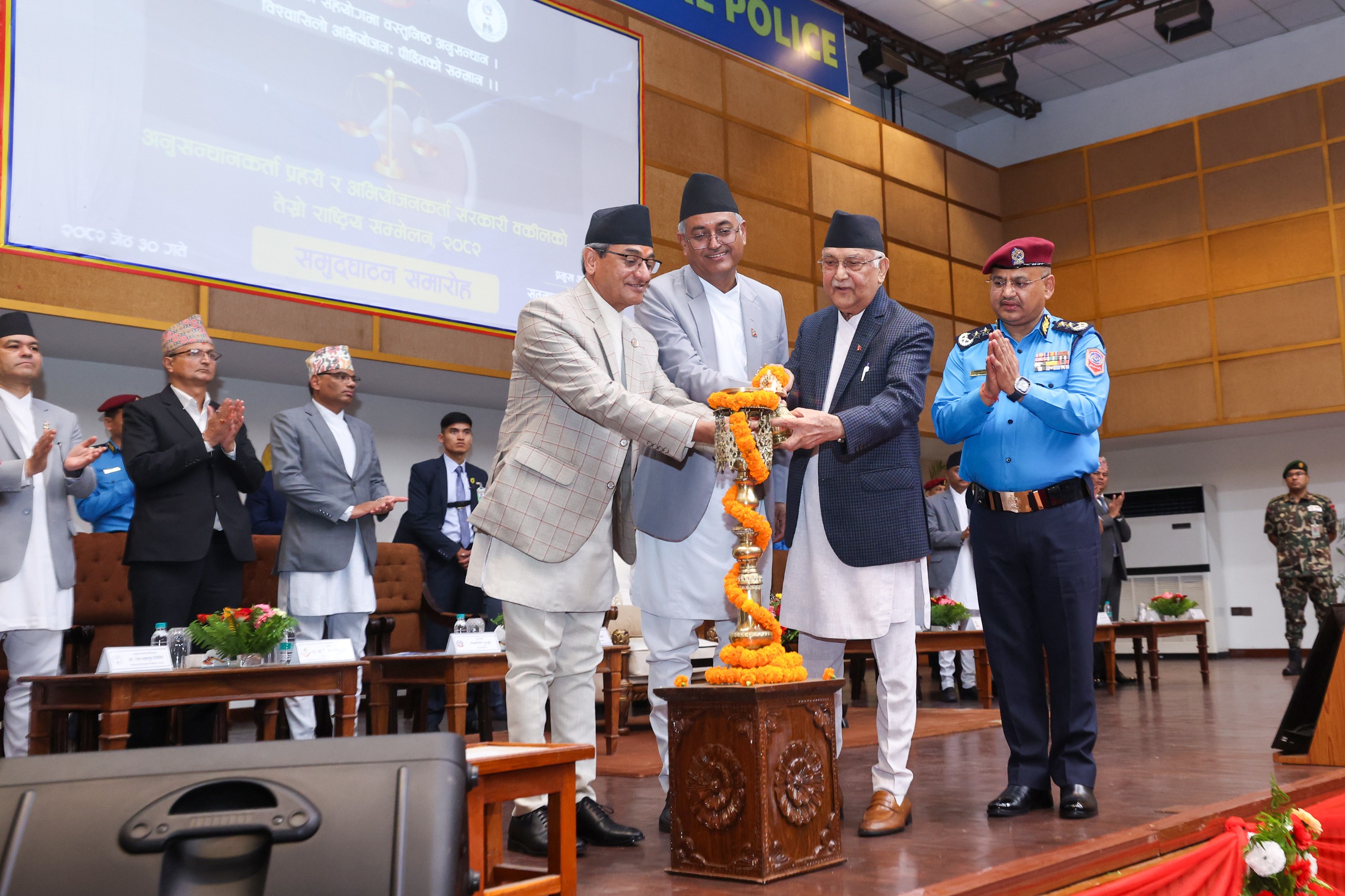 काठमाडौँ : प्रधानमन्त्री केपी शर्मा ओलीले अनुसन्धान र अभियोजनलाई प्रविधिको प्रयोगसहित प्रमाणयुक्त र प्रभावकारी बनाएर न्याय निरुपणमा सघाउन आग्रह गरेका छन्। अनुसन्धानकर्ता प्रहरी र अभियोजनकर्ता सरकारी वकिलको तेस्रो राष्ट्रिय सम्मेलनको उद्घाटन गर्दै प्रधानमन्त्री ओलीले दुविधामुक्त न्याय सम्पादनका लागि अनुसन्धान र अभियोजनमा तथ्य र प्रमाणको महत्त्वमाथि जोड दिन आग्रह गरेका हुन्।