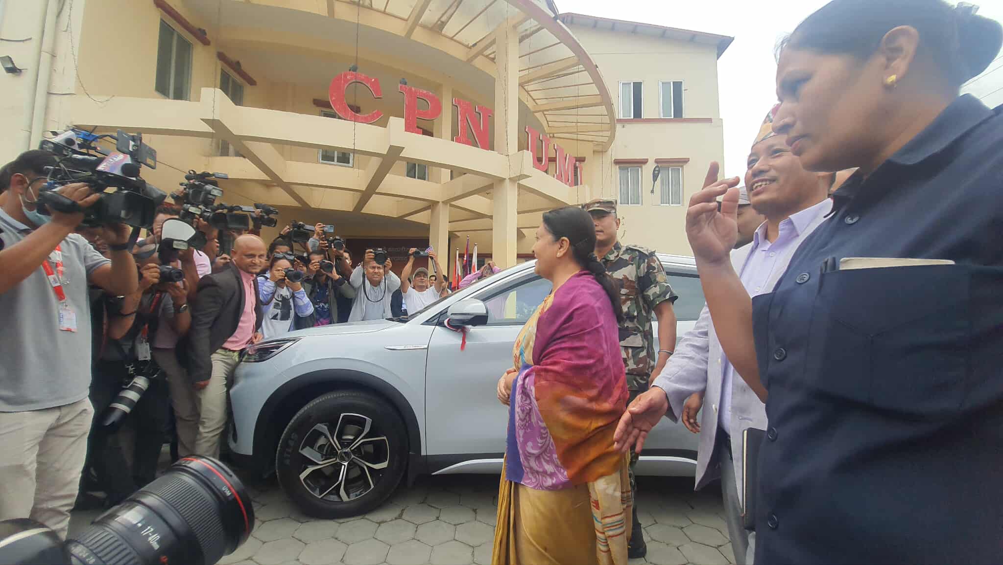 काठमाडौं : राजनीतिक विश्लेषकहरूलाई अचम्ममा पार्दै पूर्वराष्ट्रपति विद्यादेवी भण्डारी आज प्रधानमन्त्री तथा नेकपा (एमाले) अध्यक्ष केपी शर्मा ओली लाई भेट्न च्यासलस्थित एमाले मुख्यालय पुगेकी छन्। दिउँसो ३ बजेको लागि तय भएको भेट प्रधानमन्त्रीको व्यस्तताका कारण एक घण्टा ढिलो गरी ४ बजे भएको हो।
