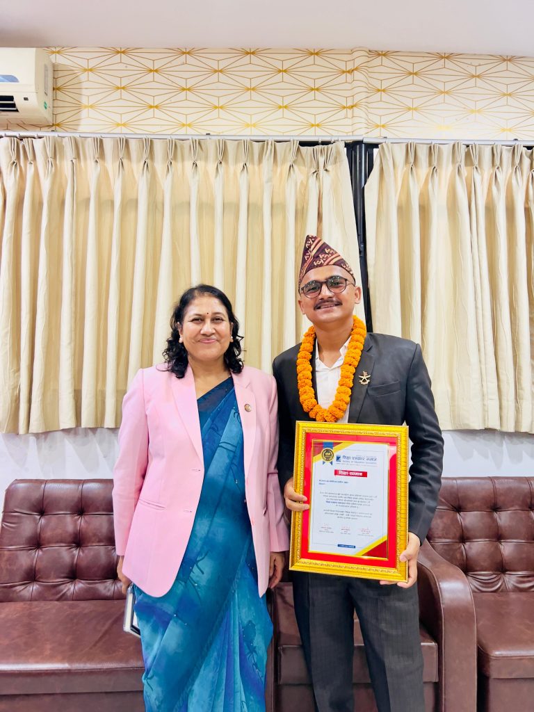 तत्कालिन शिक्षा मन्त्रीबाट सम्मानित हुँदै युवराज बम