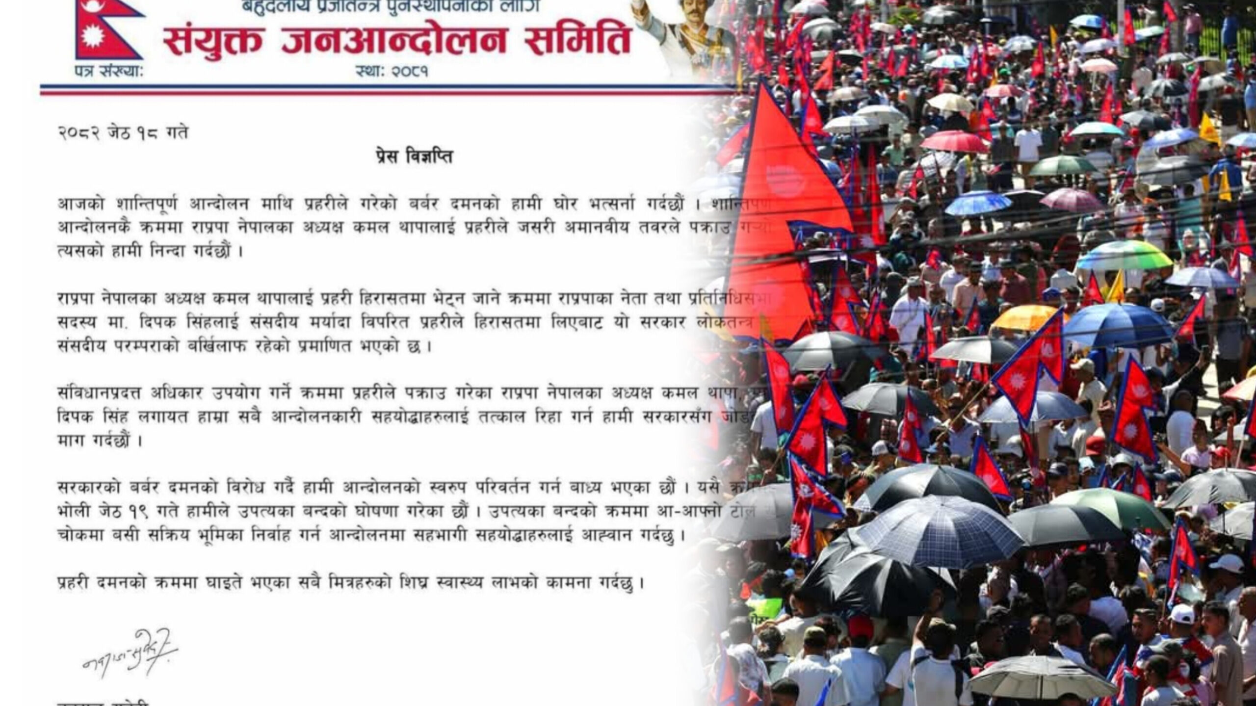 काठमाडौ : काठमाडौंमा राजावादीको प्रदर्शनबाट नियन्त्रणमा लिइएका राप्रपा नेपालका अध्यक्ष कमल थापा, राप्रपाका सांसद दीपक सिंहसहित ७ जनालाई प्रहरीले छाडेको...